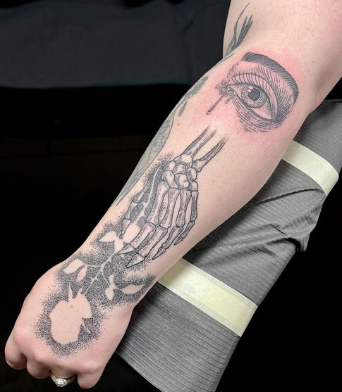 We are a group of talented and experienced artists who are passionate about tattooing. Everyone has their own unique style and specializes in different types of tattoo work; traditional, realism, neo trad, blackwork, etc. We are always up for small and simple pieces, or larger and more intricate tattoos. We offer custom work, pre drawn flash, and take walkins if available. We have a GWYG machine. We tattoo all bodies, and all skin tones. Please message your tattooer to book an appointment, or send a question to the shop.
